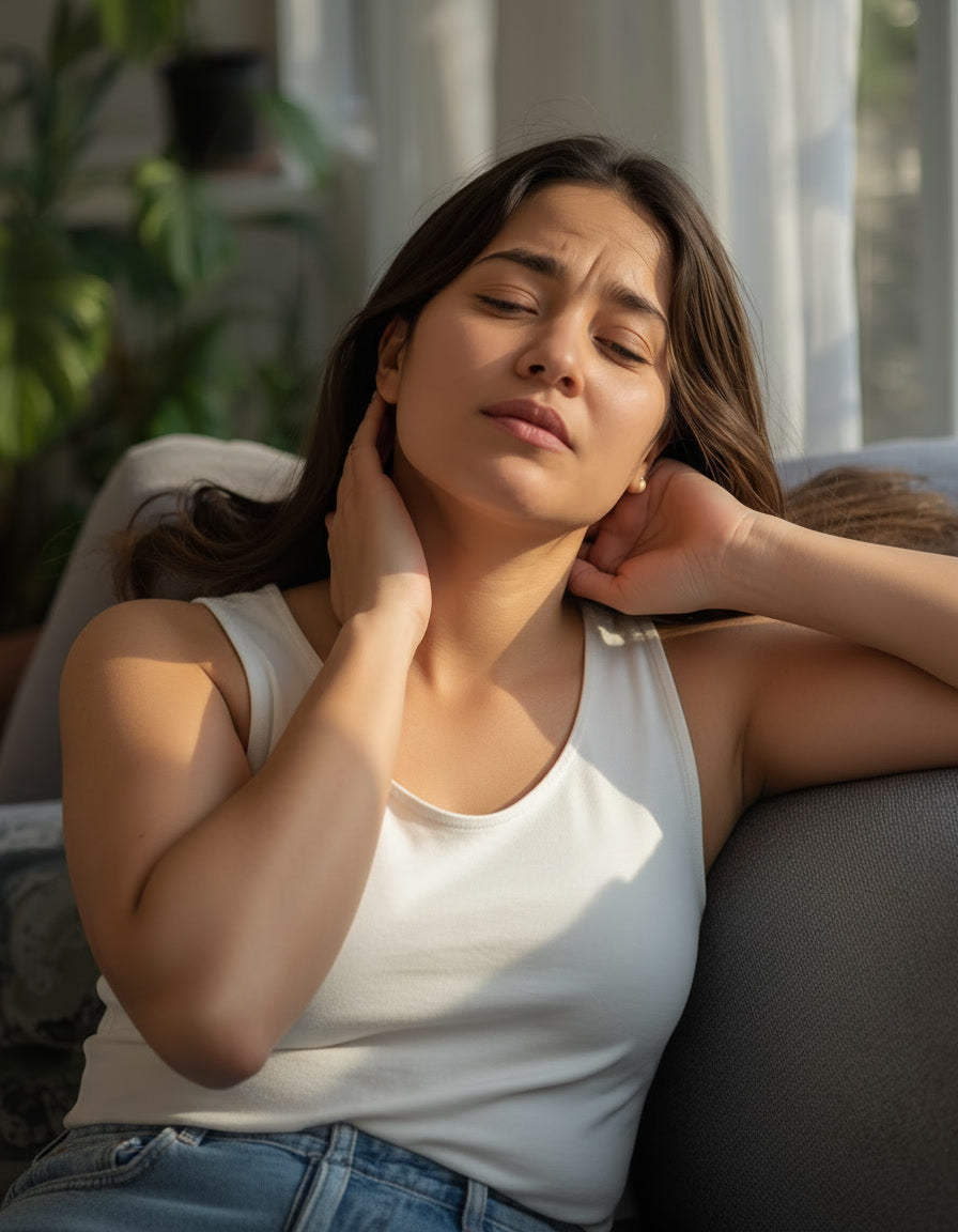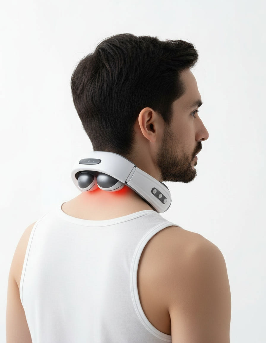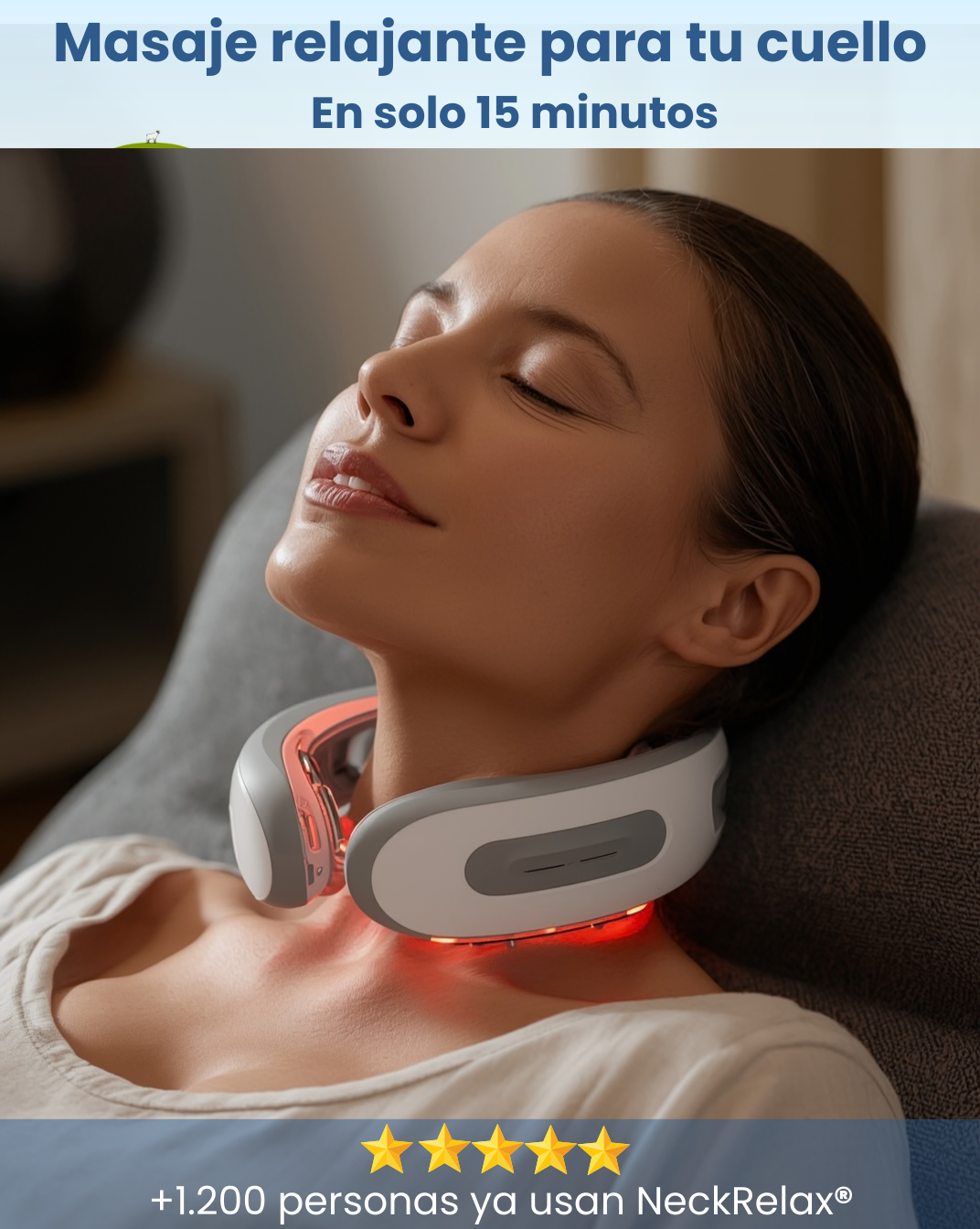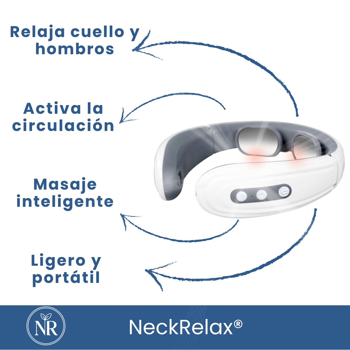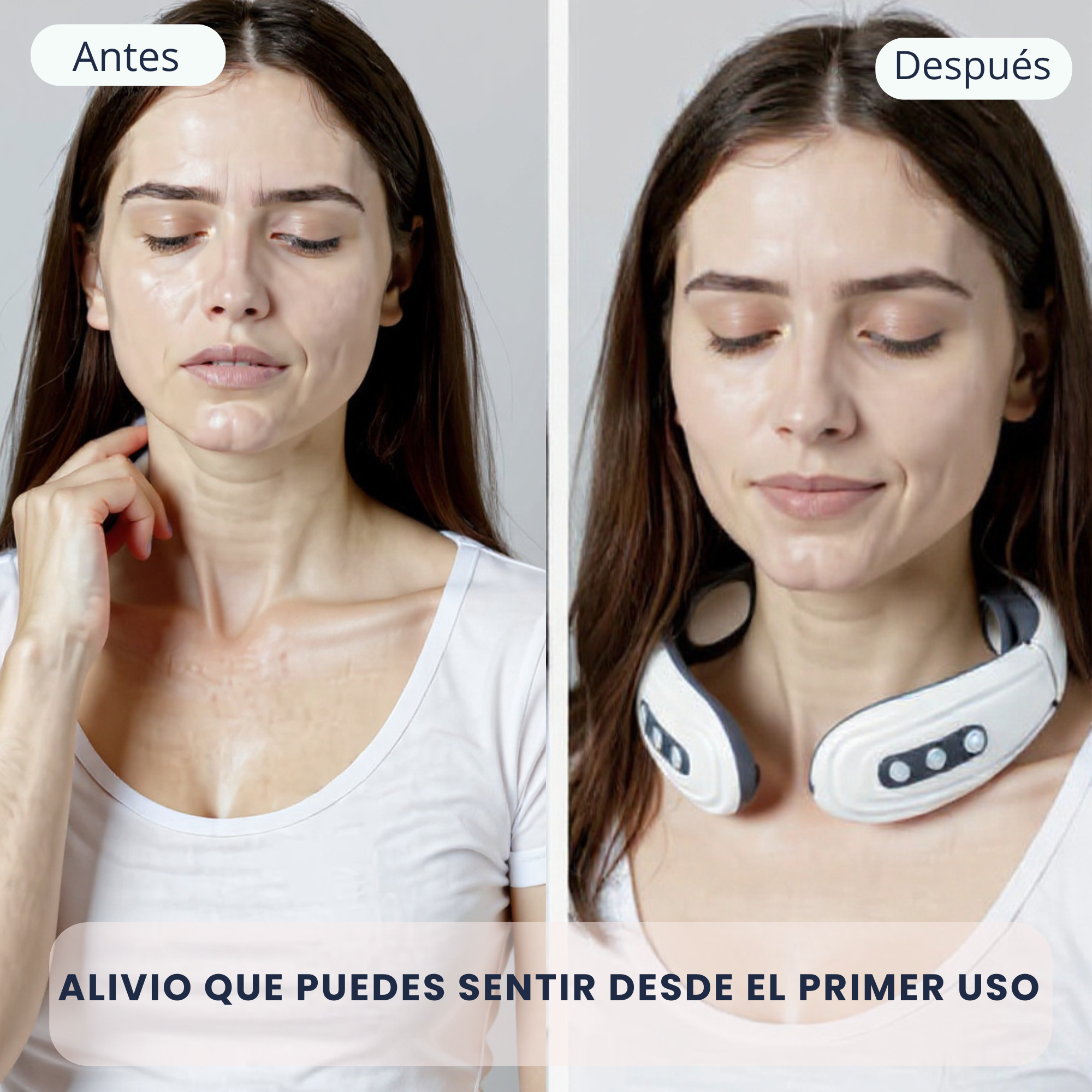 NeckRelax descomprime los músculos con calor terapéutico + micro pulsos y los relaja.